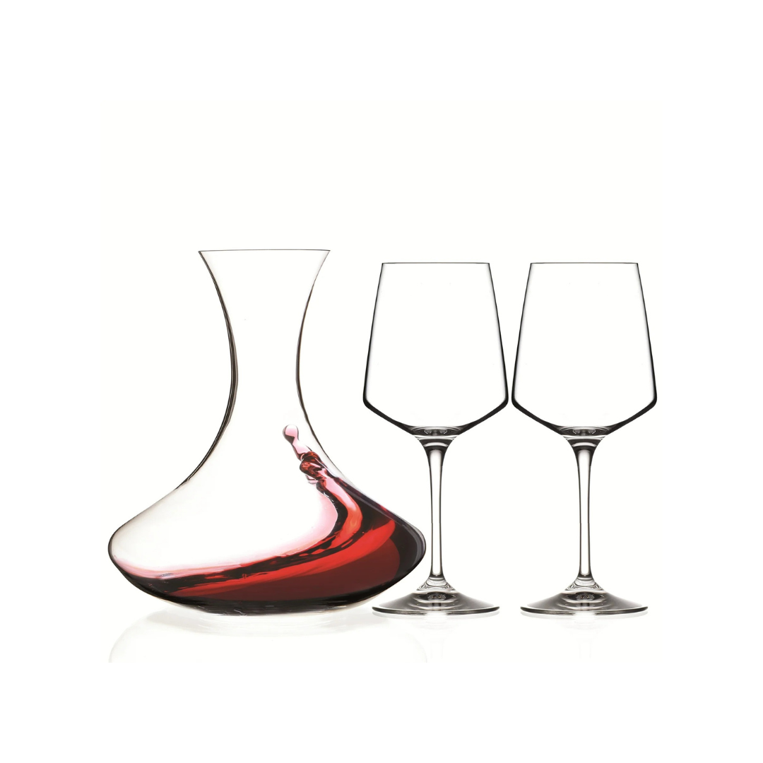 De RCR Aria Wijnset ademt elegantie met haar slanke vormen en kristalheldere afwerking. De set bevat twee wijnglazen en een stijlvolle karaf, ontworpen om de aroma’s van wijn optimaal tot hun recht te laten komen. Perfect voor een avond in stijl.